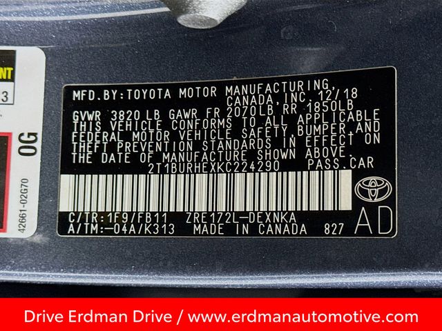 BLUETOOTH, REAR BACK UP CAMERA, LOCAL TRADE, FRESH OIL CHANGE, CARFAX ONE OWNER VEHICLE, CLEAN CARFAX NO ACCIDENTS REPORTED, ABS brakes, Active Cruise Control, Electronic Stability Control, Heated door mirrors, Illuminated entry, Low tire pressure warning, Remote keyless entry, Traction control. Toyota 2019 Corolla Slate Metallic LE