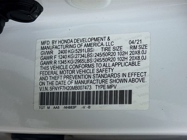 2021 Honda Passport Platinum White Pearl Sport