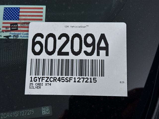 New Price! Certified. Argent Silver Metallic 2025 Cadillac XT4 Premium Luxury FWD 9-Speed Automatic 2.0L Turbocharged 6-Way Power Passenger Seat Adjuster, 7-Speaker Audio System, 8-Way Power Driver Seat Adjuster, Apple CarPlay/Android Auto, Auto High-beam Headlights, Auto-dimming door mirrors, Auto-Dimming Inside Rear-View Mirror, Brake assist, Bumpers: body-color, Delay-off headlights, Deleted 3 Years of OnStar Premium Plan (DISC), Electronic Stability Control, Emergency communication system: OnStar and Cadillac connected services capable, Fully automatic headlights, Garage door transmitter, Heated door mirrors, Illuminated entry, Leather Seating Surfaces, Leather steering wheel, Manual Rake & Telescoping Steering Column, Memory seat, Navigation system: Google Automotive Services Capable, Power Liftgate, Power passenger seat, Preferred Equipment Group 1SD, Radio: Google Built-In Infotainment Experience, Rear anti-roll bar, Remote keyless entry, SiriusXM w/360L Trial Subscription, Steering wheel mounted audio controls, Turn signal indicator mirrors, Wheels: 18" Tri 5-Spoke Pearl Nickel Finish Alloy, Wireless Apple CarPlay/Wireless Android Auto.
