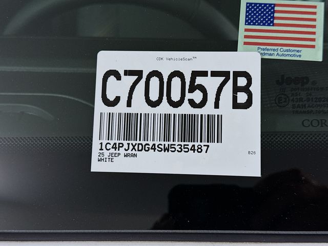 New Price! Bright White Clearcoat 2025 Jeep Wrangler Sport S 4WD 8-Speed Automatic 3.6L V6 24V VVT CLEAN CARFAX, ONE OWNER, FRESH OIL CHANGE, 110 MPH Vehicle Max Speed Calibration, 2-Door Passive Entry, Front Door Locks, 3.45 Overall Top Gear Ratio, 7 & 4 Pin Wiring Harness, 8 Speakers, Advanced Brake Assist, Air Conditioning w/Auto Temperature Control, Air Filtering, AM/FM radio: SiriusXM, Apple CarPlay/Android Auto, Auto High Beam Headlamp Control, Automatic Headlamps, Aux Battery, Auxiliary Switches, Black 3-Piece Hard Top, Blind Spot & Cross Path Detection, Class II Receiver Hitch, Cluster 7.0" TFT Color Display, Convenience Group, Corning Gorilla Glass, Deep Tint Sunscreen Windows, Delay-off headlights, Emergency/Assistance Call, Enhanced Adaptive Cruise Control, Freedom Panel Storage Bag, Front fog lights, Full Speed Forward Collision Warning Plus, Heated Front Seats, Heated Steering Wheel, Illuminated entry, Injection Molded Black Rear Bumper, Integrated roll-over protection, LED Taillamps, Low tire pressure warning, MOPAR All-Weather Floor Mats, Non-Lock Fuel Cap w/o Discriminator, Normal Duty Suspension, Outside temperature display, ParkSense Rear Park Assist System, ParkView Rear Back-Up Camera, Power Heated Mirrors, Power steering, Power windows, Premium Wrapped Steering Wheel, Quick Order Package 24S Sport S, Radio data system, Radio: Uconnect 5 w/12.3" Display, Rear Window Defroster, Rear Window Wiper/Washer, Remote keyless entry, Remote Start System, Safety Group, Security Alarm, Steering wheel mounted audio controls, Stop-Start Dual Battery System, Sun Visors w/Illuminated Vanity Mirrors, Trailer Tow & Aux Switch Group, Universal Garage Door Opener, Wheels: 17" x 7.5" Black Steel Styled, Wheels: 17" x 7.5" Gray.