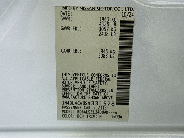 New Price! Gray Sky Pearl 2025 Nissan Altima 2.5 SR FWD CVT with Xtronic 2.5L 4-Cylinder DOHC 16V CLEAN CARFAX, LOCAL TRADE, NO ACCIDENTS, CVT with Xtronic, 2-Way Driver Power Lumbar Support, 4-Way Power Passenger Seat, 6 Speakers, Air Conditioning, AM/FM radio: SiriusXM, Auto High-beam Headlights, Blind Spot Warning, Body-Colored Splash Guards, Bumpers: body-color, Delay-off headlights, Driver door bin, Driver vanity mirror, Dual Zone Automatic HVAC, Four wheel independent suspension, Front reading lights, Fully automatic headlights, Heated Front Seats, Illuminated entry, Leather Shift Knob, Leather-Appointed Seat Trim, NissanConnect, NissanConnect featuring Apple CarPlay and Android Auto, Outside temperature display, Overhead console, Passenger vanity mirror, Power door mirrors, Power driver seat, Power steering, Power windows, Premium Sport Interior Finishers, Radio data system, Radio: AM/FM Audio System, Rear Parking Sensors, Rear reading lights, Rear seat center armrest, Rear window defroster, Remote Engine Start w/Intelligent Climate Control, Remote keyless entry, Single Panel Moonroof, SR Floor Mats/Trunk Mat/Hideaway Nets, SR Premium Package, Steering wheel mounted audio controls, Tachometer, Tilt steering wheel, Traction control, Trip computer, Unique Sport Seats, Wheels: 19" Sport Machined Alloy.