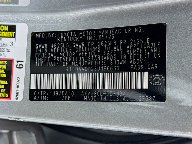 BLUETOOTH, REAR BACK UP CAMERA, APPLE/ANDROID CAR PLAY, LANE DEPARTURE WARNING, LOCAL TRADE, FRESH OIL CHANGE, CARFAX ONE OWNER VEHICLE, 2.5L 4-Cylinder 16V DOHC, Black w/Fabric Seat Trim, ABS brakes, Active Cruise Control, Alloy wheels, Electronic Stability Control, Front dual zone A/C, Heated door mirrors, Illuminated entry, Low tire pressure warning, Remote keyless entry, Traction control. Toyota 2025 Camry Heavy Metal LE