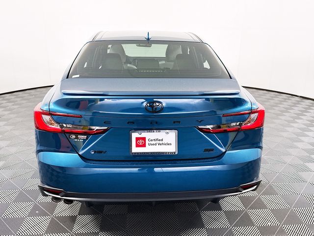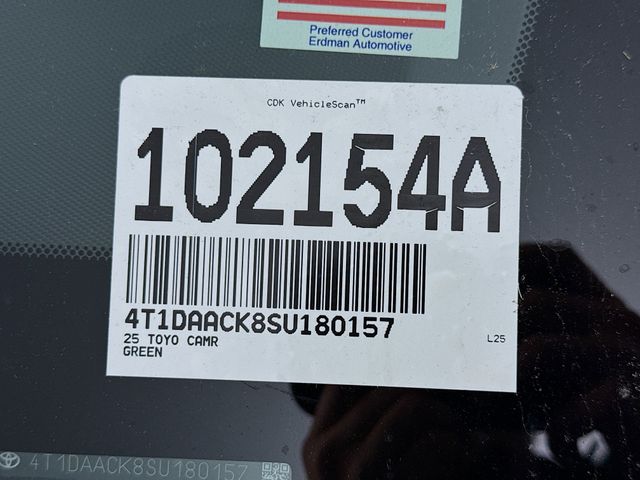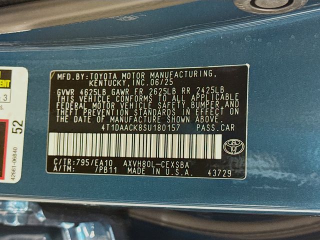 BLUETOOTH, REAR BACK UP CAMERA, APPLE/ANDROID CAR PLAY, BLIND SPOT MONORITING, LANE DEPARTURE WARNING, LEATHER SEATING, LOCAL TRADE, FRESH OIL CHANGE, CARFAX ONE OWNER VEHICLE, 2.5L 4-Cylinder 16V DOHC, Black w/SofTex & Fabric Seat Trim, ABS brakes, Active Cruise Control, Alloy wheels, Electronic Stability Control, Front dual zone A/C, Heated door mirrors, Illuminated entry, Low tire pressure warning, Remote keyless entry, Traction control. Toyota 2025 Camry Ocean Gem SE